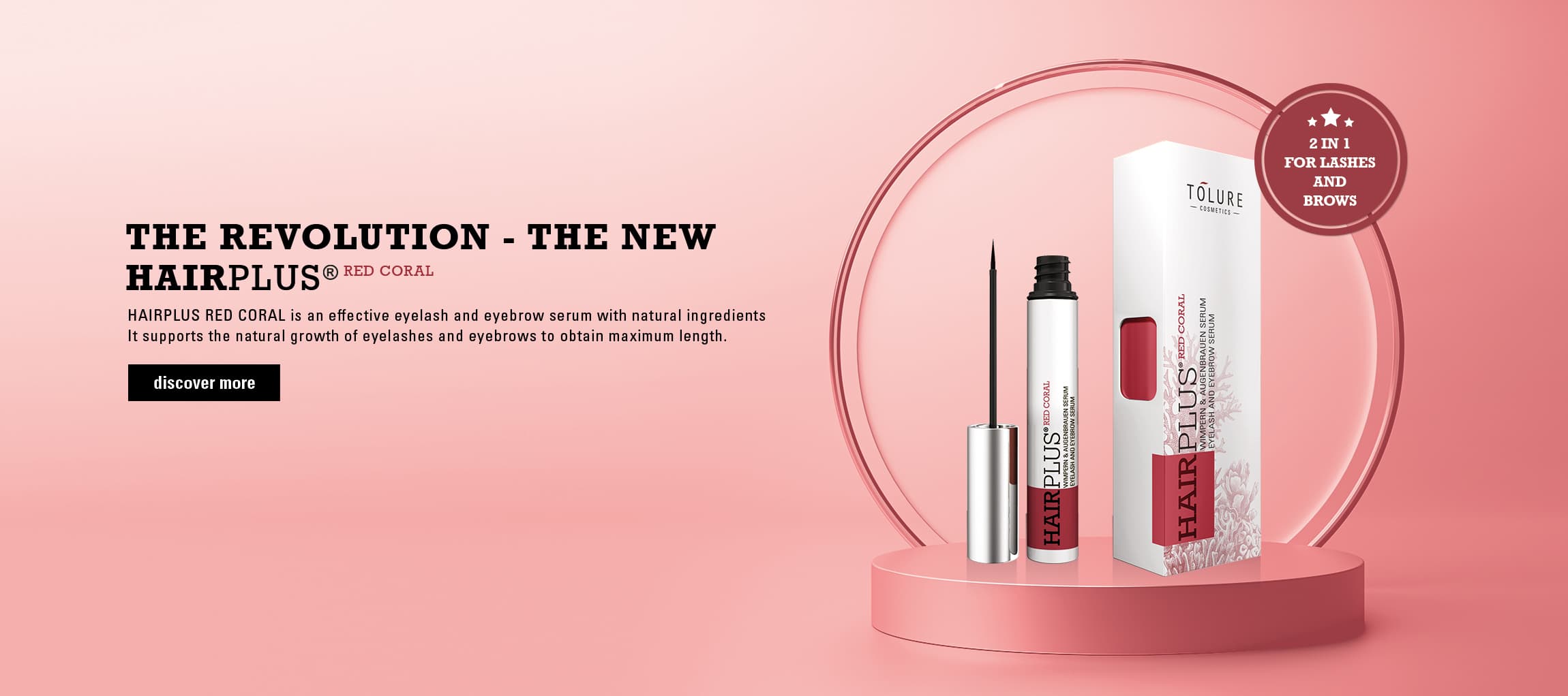 We want to make insecurities disappear, whether thin lips, wrinkles and shadows under the eyes, short eyelashes or hair loss with our highly effective products, such as our Tolure HAIRPLUS eyelash and eyebrow serum, we are one of the best problem solvers in the cosmetics industry.